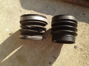 You need a 17mm ‘c’ wrench to undo the pipes – they are pretty tight and because the bomb is mounted on rubber bushes it’s hard to get good torque on them. I took them by surprise by giving the wrench a good whack with a sledgehammer(!) – worked perfectly