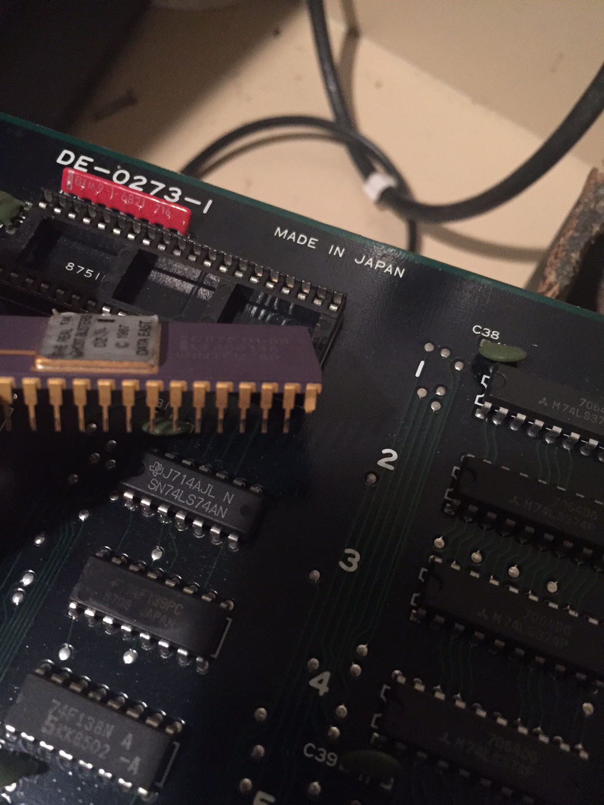 Desoldered the main 6264 RAM – which passed in a tester, and also socketed and swapped out the two smaller 4464 RAM chips. This had a positive effect on the garbage as now proper sprites could be seen instead of just lines.