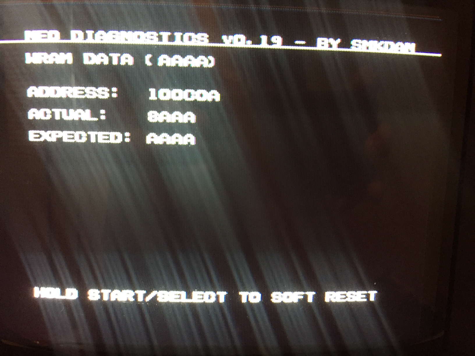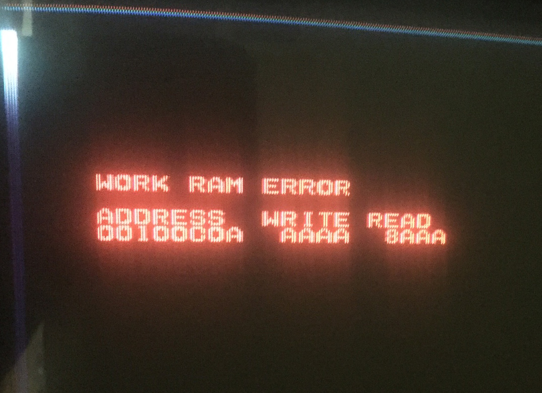 Another 4 slot – a previous owner had installed a new battery and replaced the palette RAM. The board now reported a RAM error with the original BIOS, and the diagnostic ROM confirmed it as the upper WRAM chip (see my previous 4 slot repair).