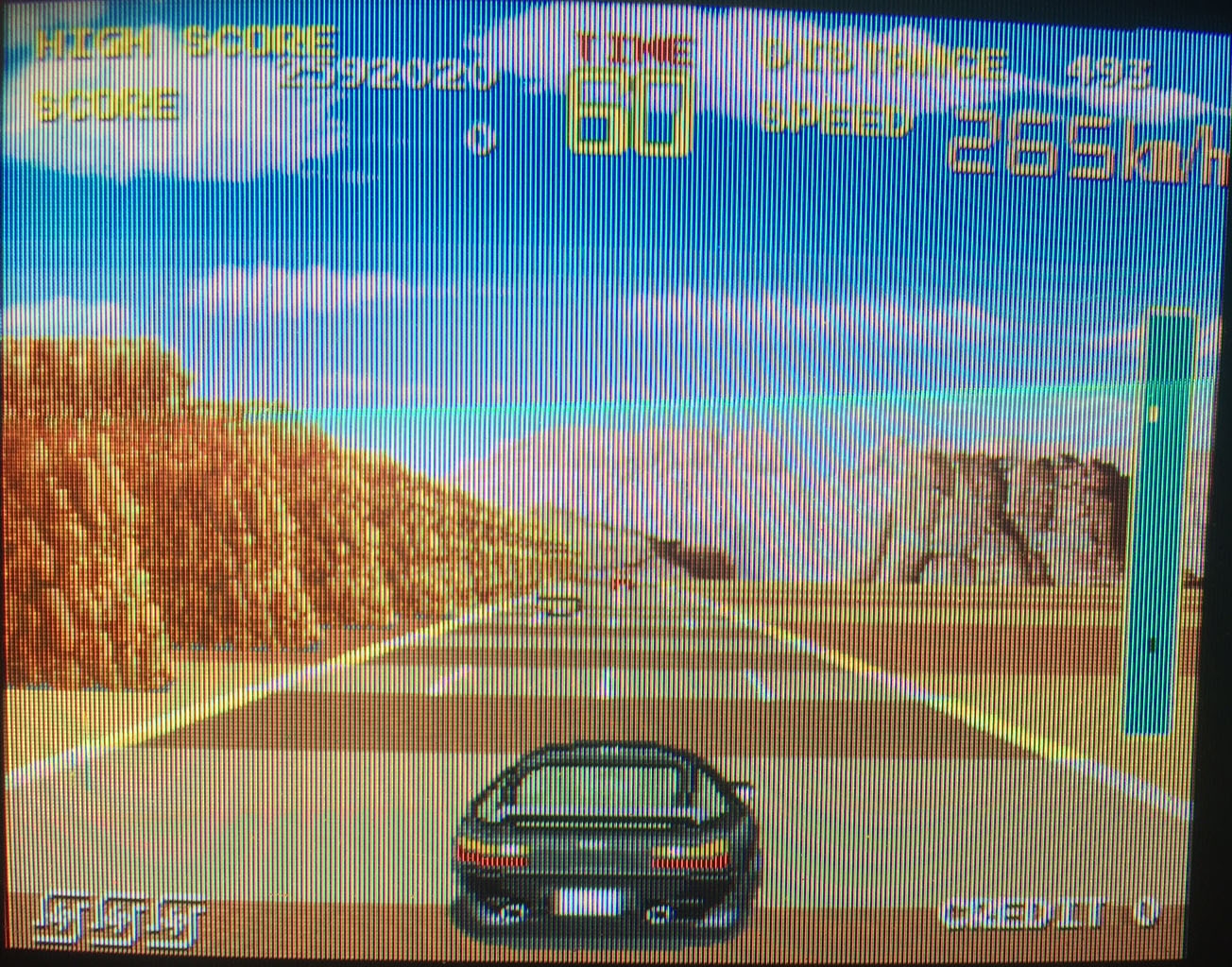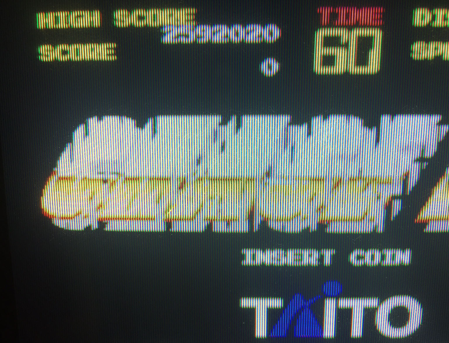 At first I thought this would just be a simple addressing problem affecting the sprite ROMs but when I examined the data format in MAME each 16 pixel row of each tile is stored at a unique address (so the 16 pixels map directly to the 16 bits on the ROM data bus). So if the glitch is within a 16 pixel block it can’t be addressing, it has to be elsewhere. Unfortunately the problem wasn’t easy to find as the entire video board is for sprite processing. Eventually I found it – dead outputs on the PROMs at IC92 or IC94 can cause this.