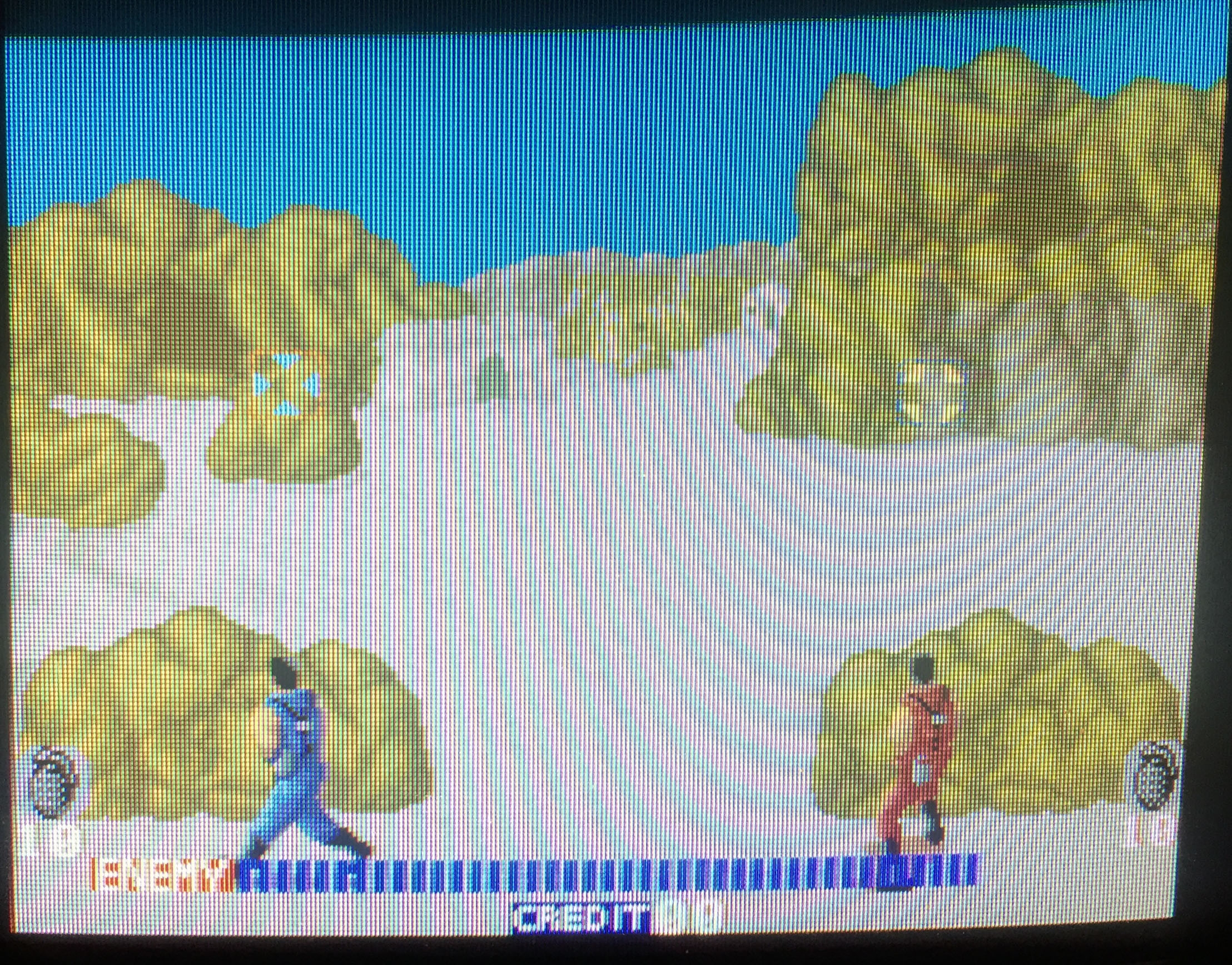 Like the Legend of Kage and Tiger Road repairs all sprites had every other scanline missing suggesting a failure in double buffered sprite line RAM.